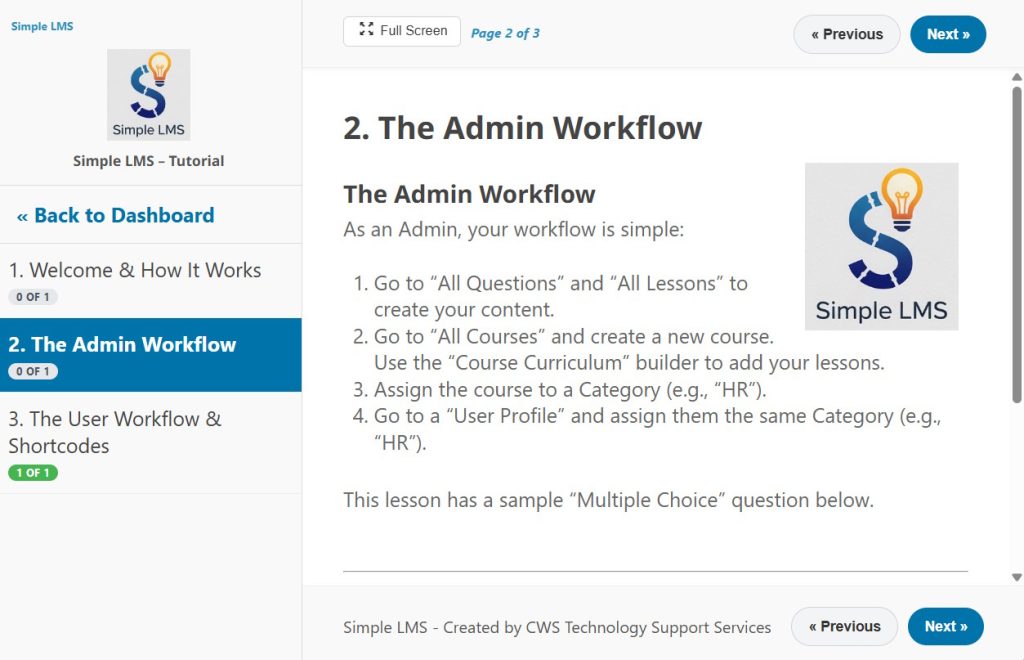 Content flexibility was a major consideration, and the solution allows a wide range of files to be delivered as course content with simple, dedicated meta boxes that simplify course creation.
